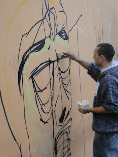 E a pintura do muro interno da Escola de Artes da AJPS, na área de treino de artes circenses